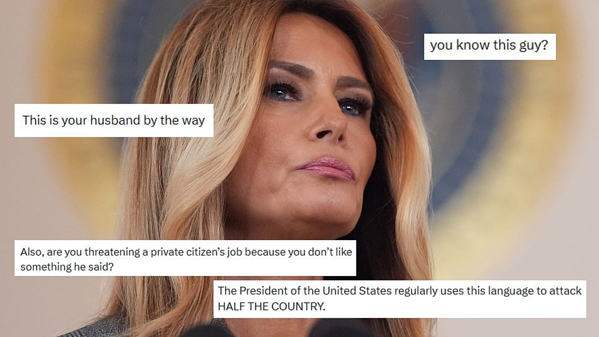 وكتب أحدهم، مرفقًا منشوره بلقطة شاشة لترامب وهو يحتفل بوفاة المدير السابق لمكتب التحقيقات الفدرالي روبرت مولر: “هذا زوجكِ بالمناسبة”.