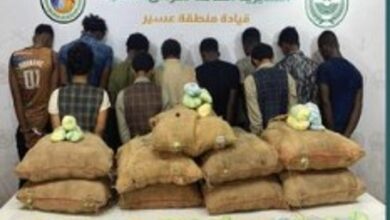 القبض على 11 مخالفًا من الجنسيتين اليمنية والإثيوبية بعسير لتهريبهم 180 كيلوجرامًا من القات