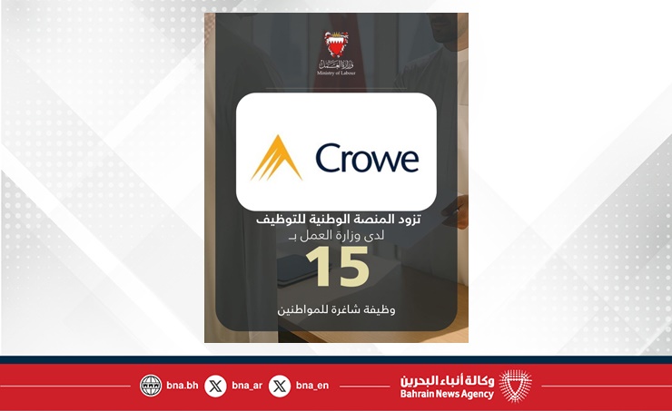 المنامة في 27 نوفمبر/ بنا / في إطار تنفيذ توجيهات صاحب السمو الملكي الأمير سلمان بن حمد آل خليفة ولي العهد رئيس مجلس الوزراء حفظه الله، بعرض 3 فرص وظيفية لكل باحث عن عمل مسجل لدى وزارة العمل، كرو بي إج شركة تضامن مهنية تزود المنصة الوطنية للتوظيف بـ 15 وظيفة شاغرة للمواطنين.