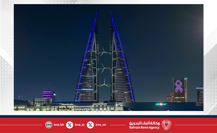 مملكة البحرين تضيء عددًا من مبانيها الرئيسية في العاصمة باللون الأزرق بمناسبة الاحتفال بيوم الأمم المتحدة