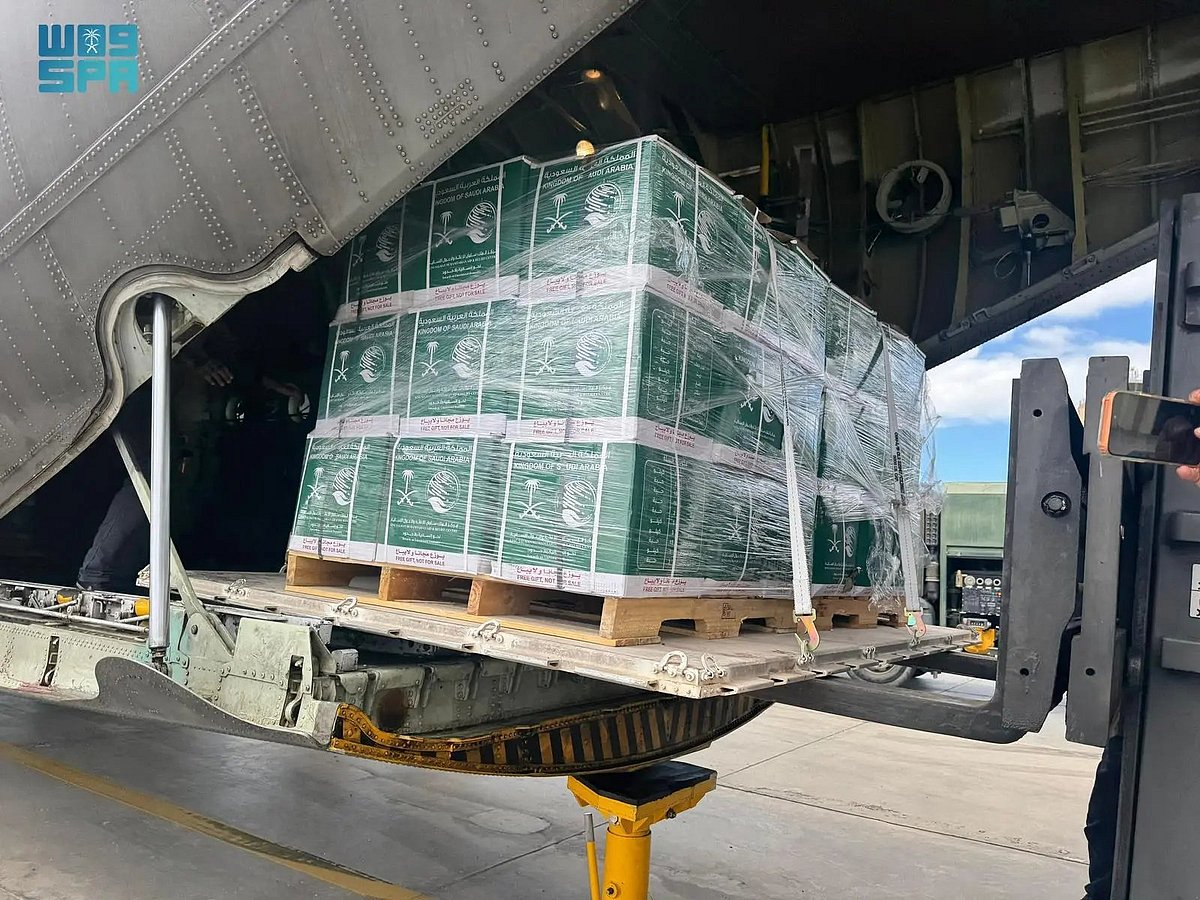 وتحمل الطائرة السعودية الـ(82) على متنها سلالًا غذائية، تمهيدًا لنقلها إلى المتضررين من الشعب الفلسطيني الشقيق داخل قطاع غزة.