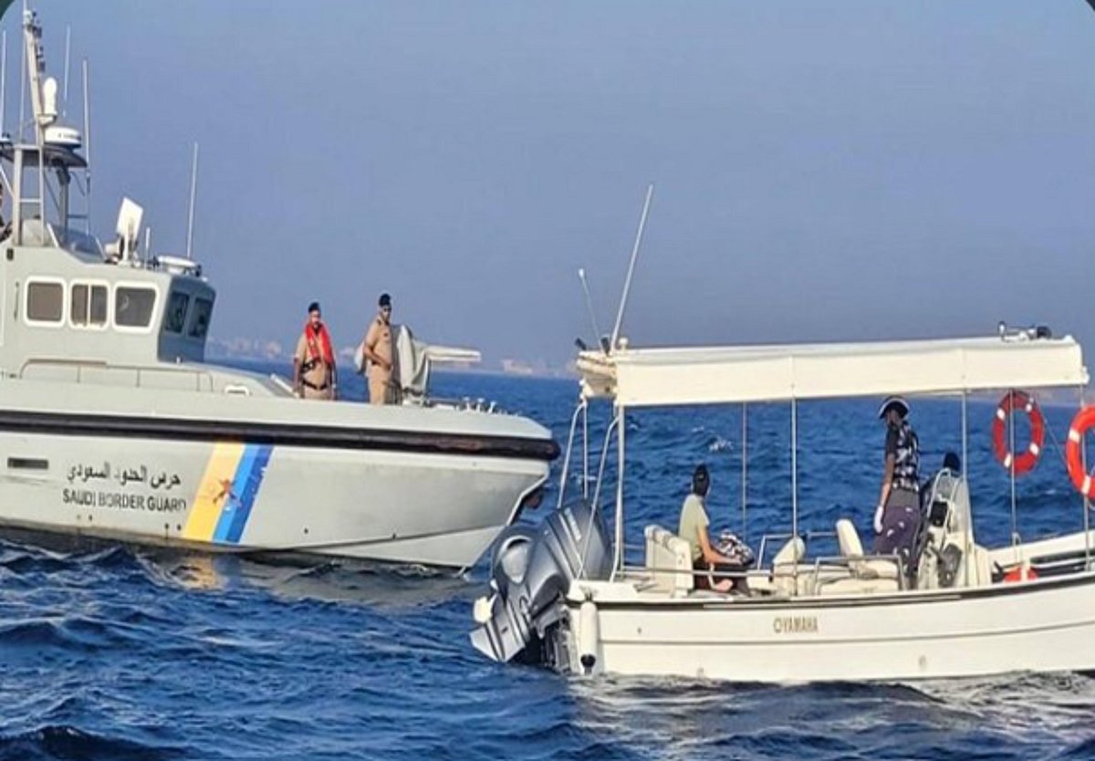 حرس الحدود بمكة ينقذ مواطنين تعطلت واسطتهما البحرية في عرض البحر