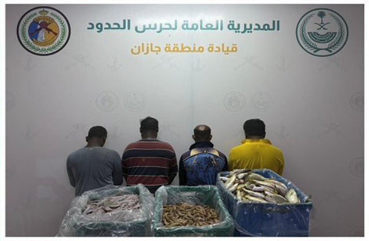 ضبطت الدوريات الساحلية لحرس الحدود في محافظة بيش بمنطقة جازان (4) مقيمين من الجنسية الهندية مخالفين للائحة الأمن والسلامة لمزاولي الأنشطة البحرية في المناطق البحرية للمملكة؛ وذلك لممارستهم الصيد دون تصريح، وبحوزتهم أسماك مصيدة.