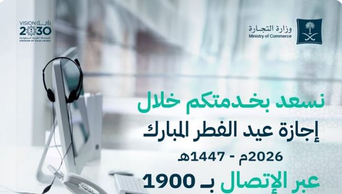 أعلنت وزارة التجارة جاهزية خدماتها وخطتها التشغيلية خلال إجازة عيد الفطر المبارك لعام 1447هـ، مؤكدة استمرار تقديم الخدمات للمستفيدين عبر منصاتها الإلكترونية على مدار الساعة دون توقف، لضمان استمرارية الأعمال وتلبية احتياجات قطاع الأعمال والمستهلكين في كافة مناطق المملكة.