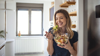 الجمع بين الكربوهيدرات والبروتين والألياف، مثل تناول اليقطين المشوي مع المكسرات أو التفاح مع الجبن القريش لتبطئ عملية امتصاص السكر.