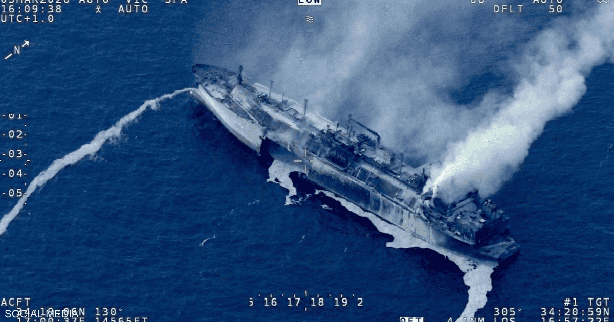 وأفادت المصلحة، عبر صفحتها على فيسبوك، الأربعاء، بأن مركز البحث والإنقاذ الليبي تلقى نداء استغاثة من الناقلة يفيد بتعرضها لانفجارات مفاجئة أعقبها حريق هائل أدى في النهاية إلى غرقها بالكامل.